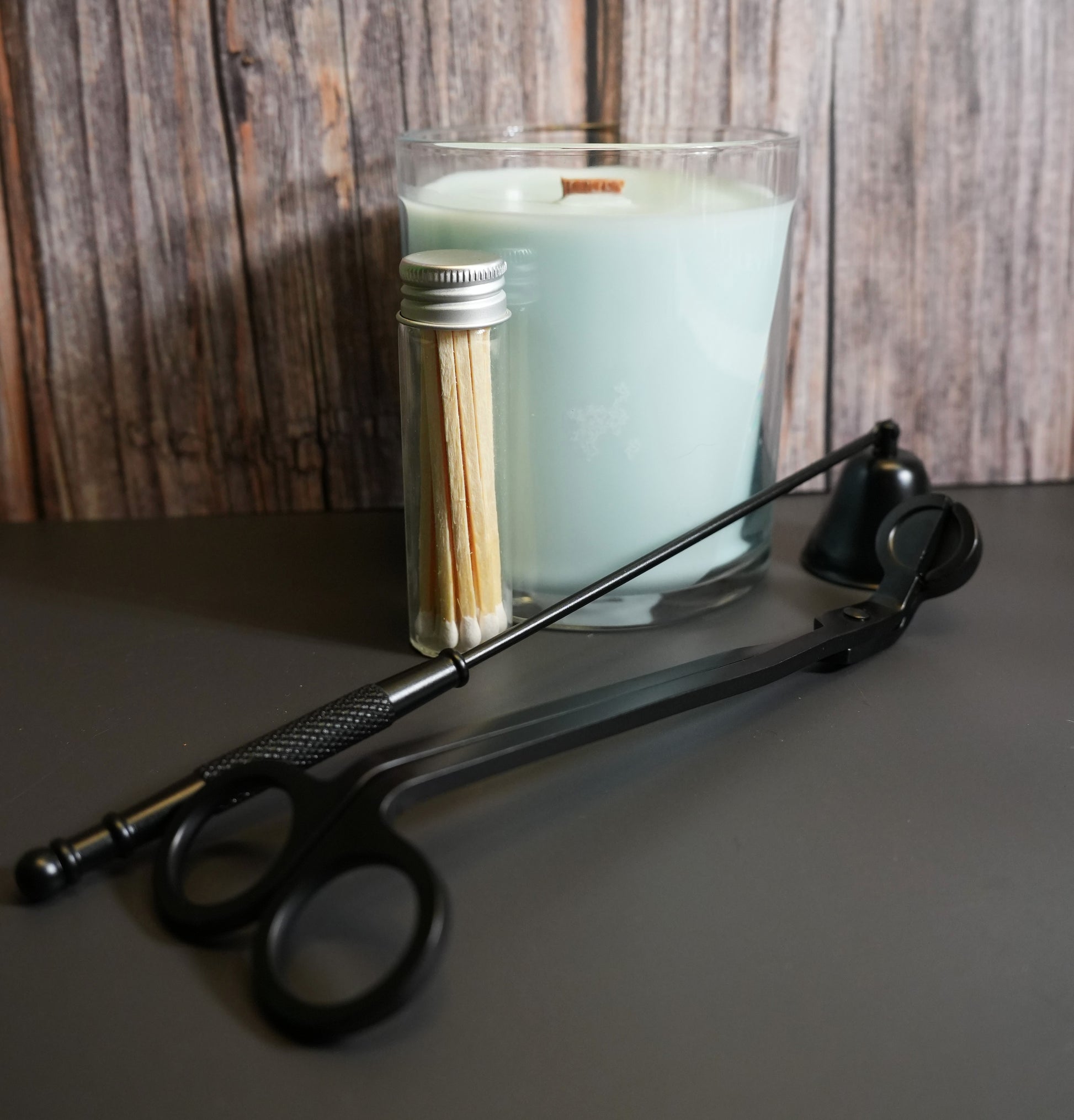 Trim your wick to about ¼ inch before each burn to reduce smoke and extend your candle’s life. Use the snuffer to gently extinguish the flame instead of blowing it out — this keeps the wax surface clean and even. Always allow your candle to cool before trimming again.