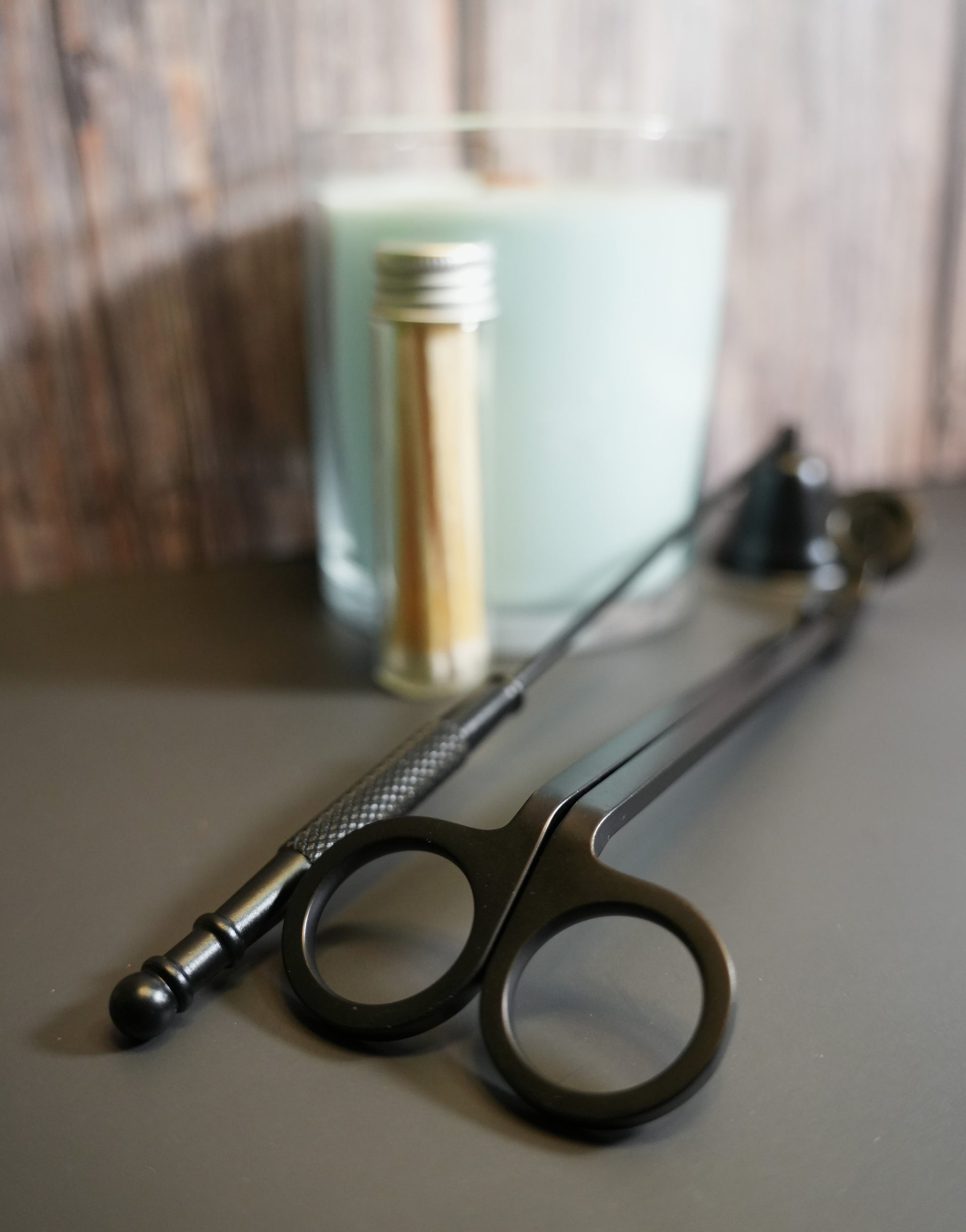 Wick Trimmer – angled for precision, designed to reach even the lowest wicks and prevent soot buildup.
